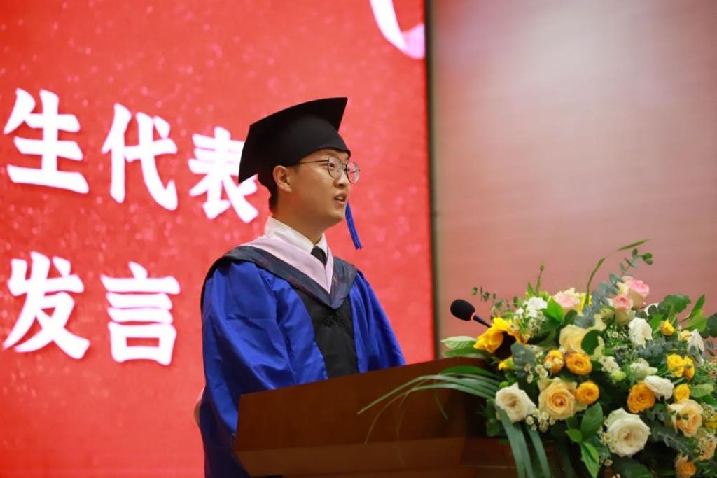 毕业研究生代表赵家宁在发言中感念重大之“大”,感谢母校为他提供了足够多的机会和平台,让他能够结识良师益友、拓展国际视野、厚积薄发。作为汉语国际教育专业毕业生,他通过两年在重大外院的学习和生活,更加坚定了“讲好中国故事,传递中国声音”的信念与决心。同时,赵家宁勉励同学们“道阻且长,行则将至。永远赤诚,永远做炬火,永远做心怀家国、不负使命的重大外院人”。