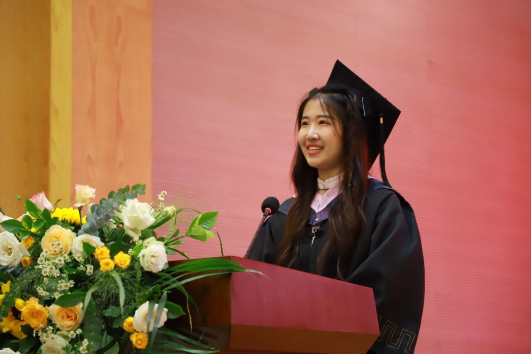 毕业本科生代表刘香冶声情并茂地回顾了她与漫蛙