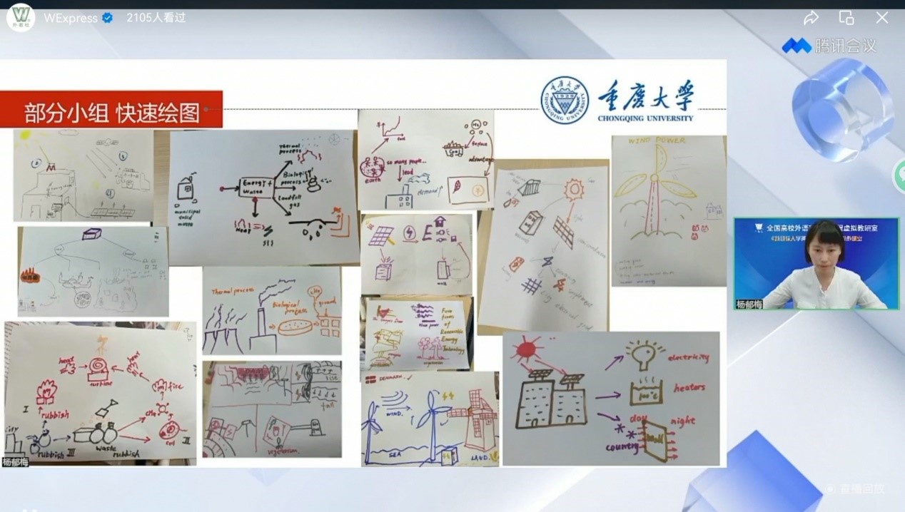 团队根据学校新工科人才培养目标,分析电气信息大类学生外语能力发展现状和要求,结合课程组使用《新目标大学英语》教材实践经验,向全国参研教师生动展示了如何将立德树人、启智创新的教材内容与大学英语课堂有机融合,扎根地方需求和学校人才培养要求,与时俱进、点面结合的实施课程思政建设。通过多模态产出导向的逆向教学设计,以发展学生语言能力为基础,全方位提升学生综合能力的教学案例,展示了漫蛙