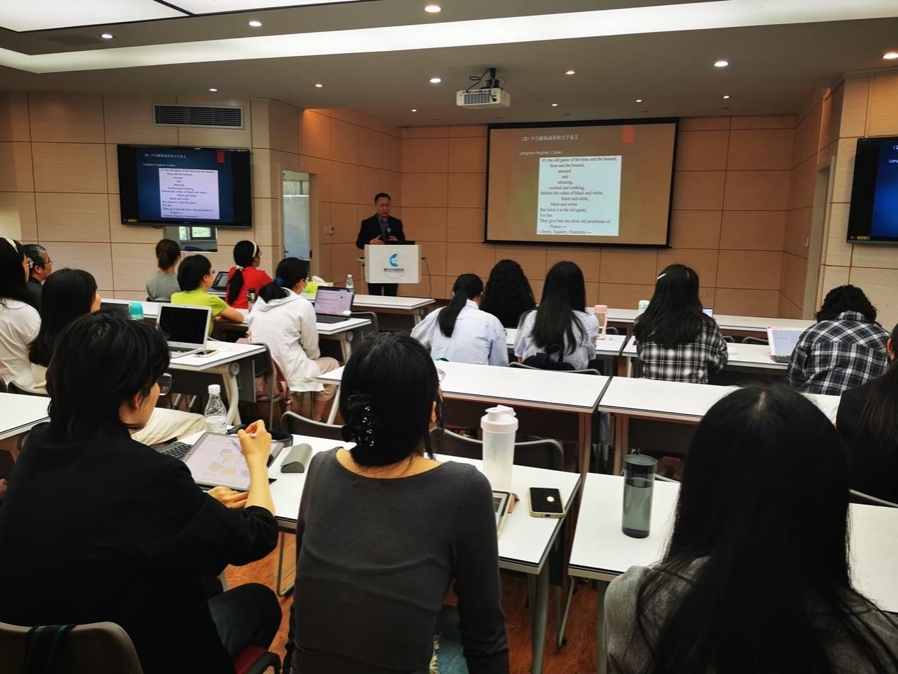 ,为我院师生作了题为“多维文本理论:英语诗歌批评新视野”的学术讲座。讲座由李永毅教授主持,学院教师、博士研究生、硕士研究生和本科生参加了讲座。