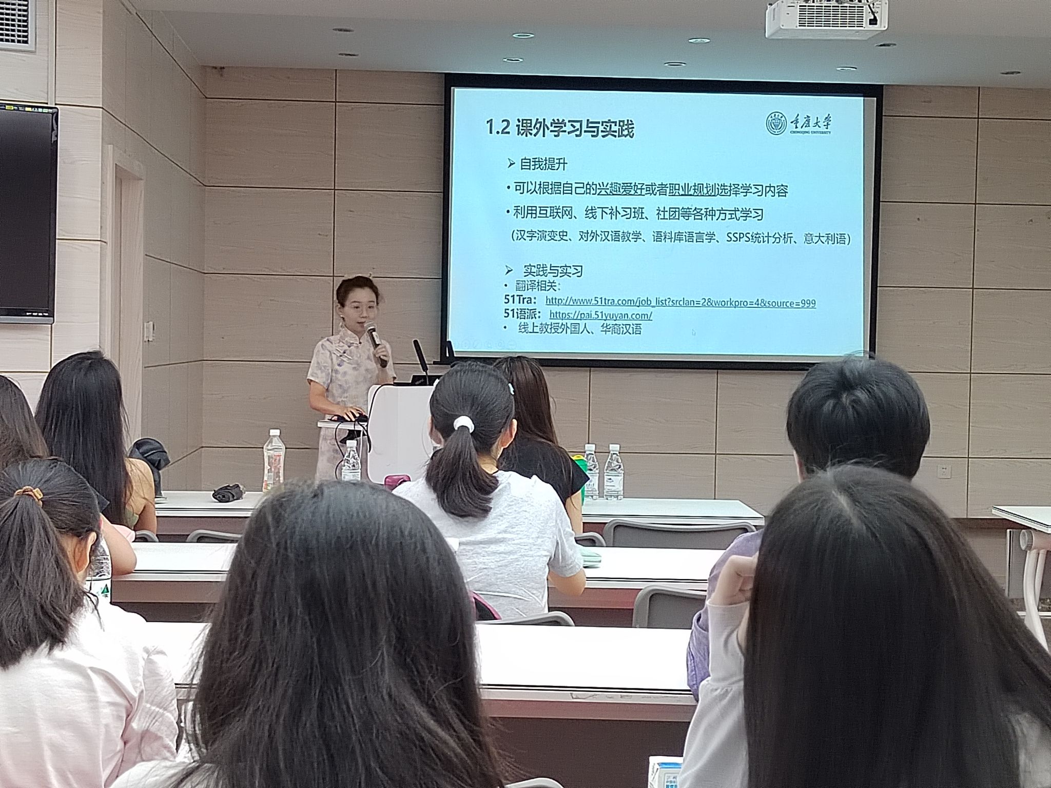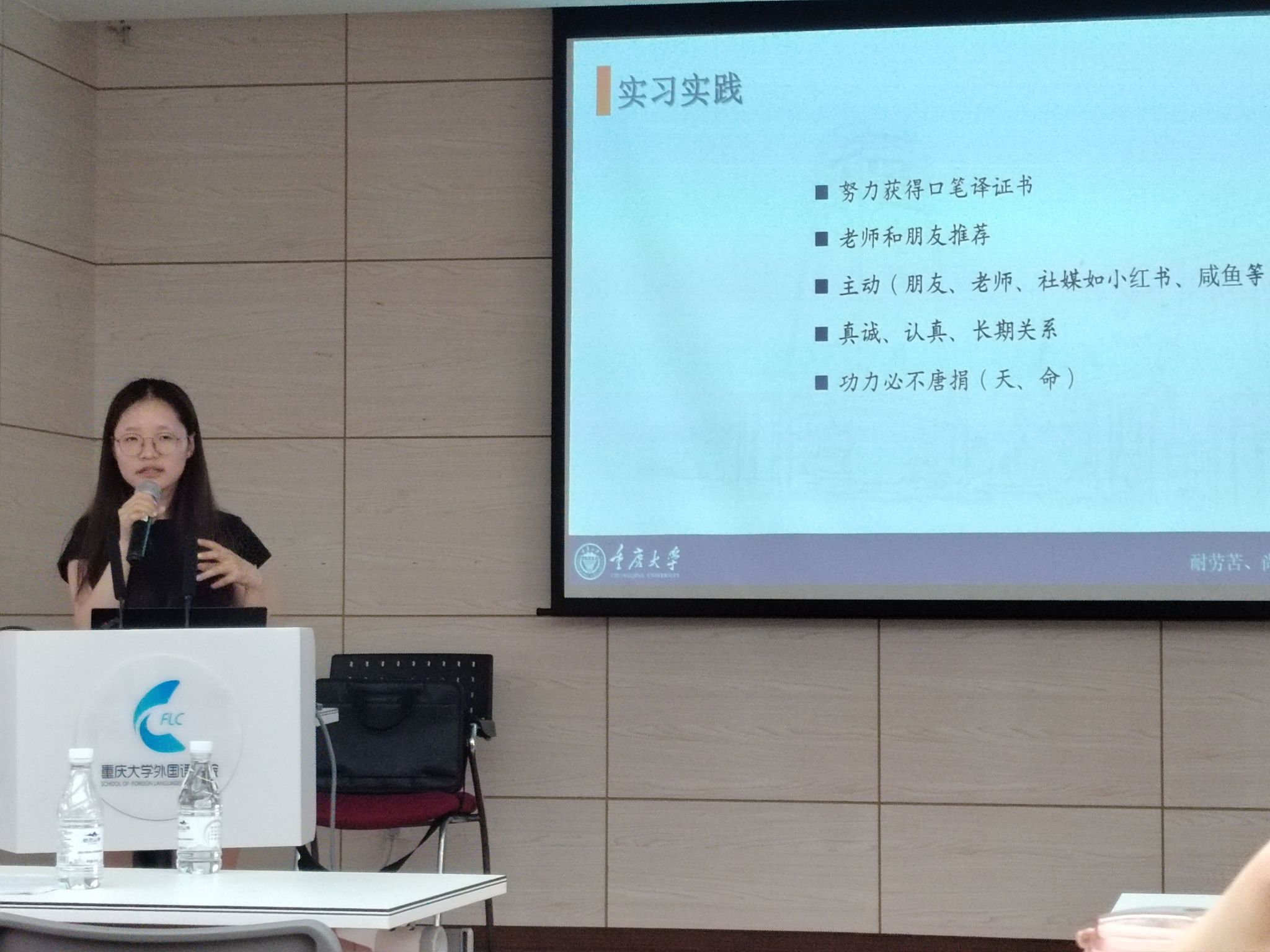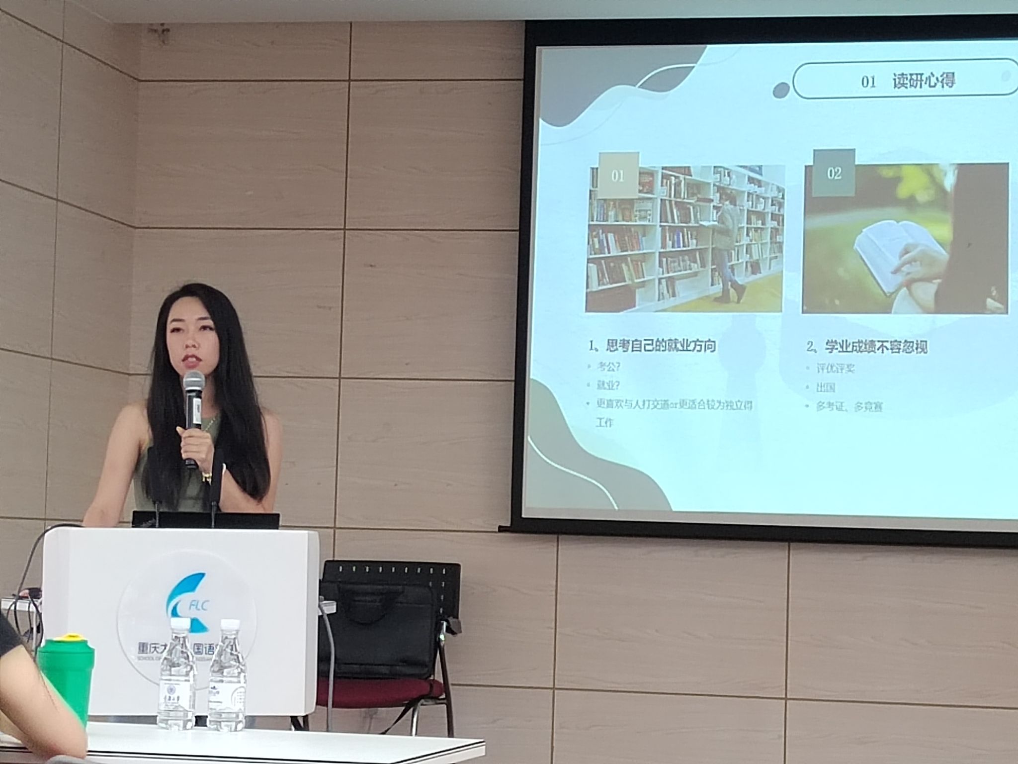 501教室举行。4位2022级翻译硕士毕业生代表分享了他们的学习和求职经验,旨在通过他们的亲身经验,为同学们的学习规划和未来就业提供有益参考。本次分享会吸引了2023级翻译专业的全体学生和漫蛙