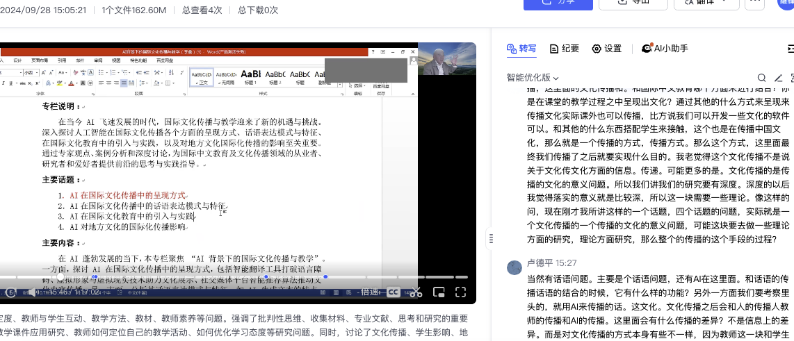 国际中文教育专业举办了一场主题为“人工智能辅助国际中文教育”的线上研讨会。此次研讨会特别邀请了北京语言大学卢德平教授,与国际中文专业教师和研究人员共同探讨了人工智能在国际中文教育领域的应用与研究。