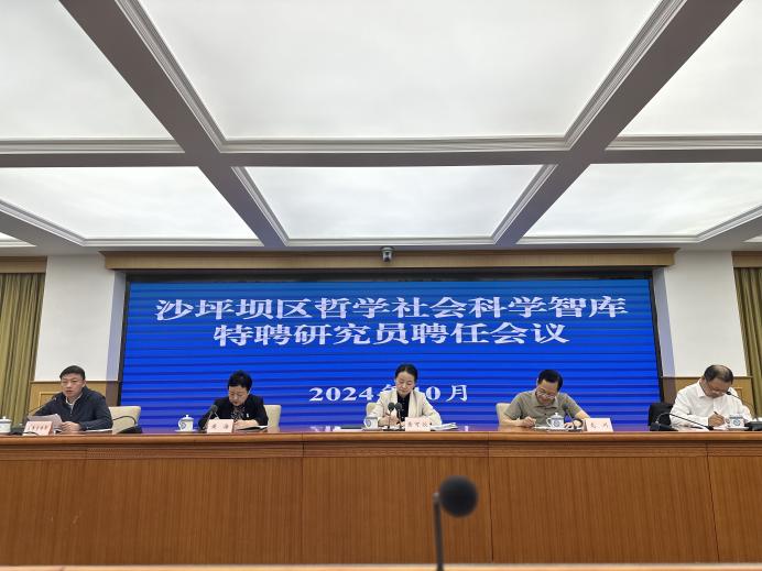 2024年10月14日,沙坪坝区哲学社会科学智库特聘研究员聘任会议在沙坪坝区级机关大楼会议中心举行,重庆市社科联党组成员、副主席龙川,沙坪坝区委常委、宣传部部长黄可欣,漫蛙