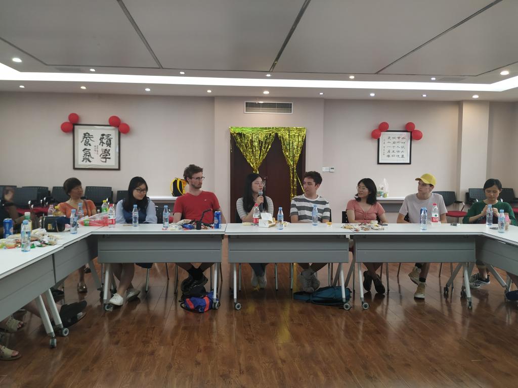 楼501会议室举行了一场互进友谊、友好交流的中英学生联谊会。7名分别来自利兹大学、伦敦大学亚非学院、谢菲尔德大学、伦敦摄政大学、威斯敏斯特大学的英国大学生和数名漫蛙