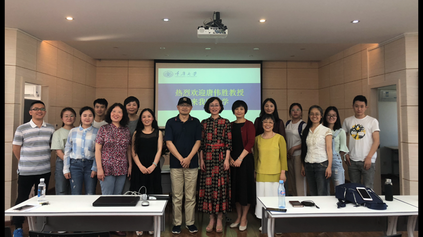 2019年5月23日下午,广东外语外贸大学云山杰出学者、博士生导师唐伟胜教授莅临虎溪校区漫蛙