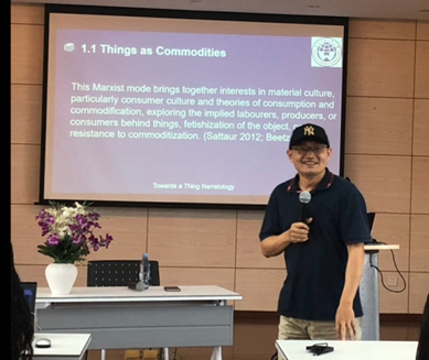 唐伟胜教授首先解释了本次讲座内容的由来,引出了叙事学研究中的新视角:源自思辨实在论哲学的“物”叙事,并从“物”的本质、“物”的存在时空、人与“物”的关系、“物”的力量在叙事中的再现等方面,阐释本体叙事学的建构问题,包括物叙事研究的意义,研究现状,研究路径等。唐教授思维敏捷活跃,学术视野开阔,阐释深入浅出又不失幽默豁达,给在场师生留下了深刻的印象。