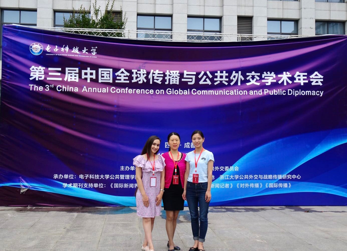 2019年5月18日-19日,我院汉语国际教育硕士专业教师杜瑾携学生马艳花和塔吉克斯坦留学生书瑶(Alizoda Mahvashi)赴成都电子科技大学参加了我国第三届全球传播与公共外交学术年会。马艳花同学在专场讨论中宣读了论文,并获得在场专家的好评。
