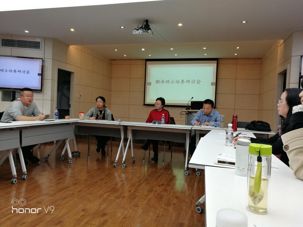 翻译硕士点的基本情况,提出了此次研讨会重点讨论的几个问题:一是课程设置中彰显学校特色,二是学生翻译实践质量的监控,三是翻译硕士培养中的校企协作模式。