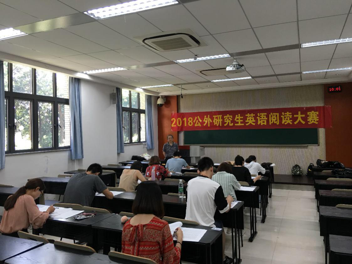 6月28日上午10点,阅读大赛正式开始;下午14:30写作大赛开始进行。根据报名与初赛的结果,分别遴选出各11名选手参加公外研究生组阅读与写作比赛,16名选手参加公外研究生组演讲比赛。公外研究生英语课程组的沈毅老师与段均老师积极承担了阅读与写作的监考工作。在为时一个半小时的阅读和写作比赛中,每位参赛选手都认真答题,力争发挥自己的最佳水平。经过赛后评委老师的阅卷评分,阅读大赛的特等奖与一等奖由魏浩同学和万怡浩同学获得;写作大赛的特等奖与一等奖由万怡浩同学和包安泽同学获得。其他参赛选手则分别获得了二等奖,三等奖及优胜奖。