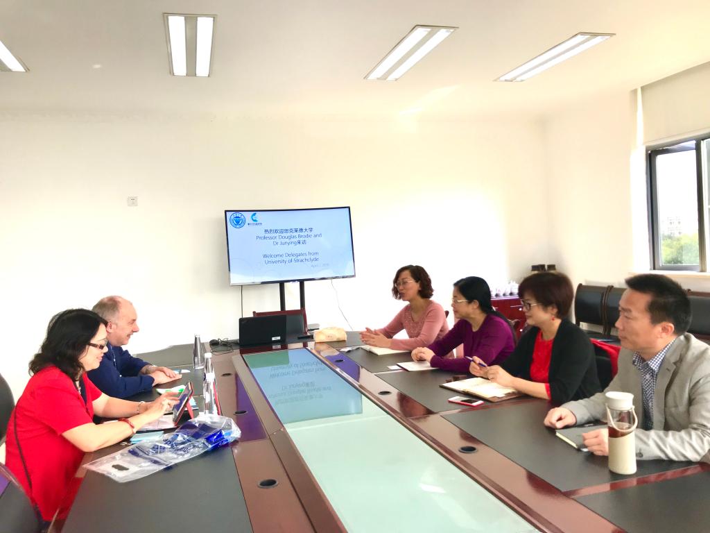 2018年4月2日,英国思克莱德大学副校长、人文社科学部执行部长Douglas Brodie教授,人文与社会科学学院及国际合作主任曾俊英博士一行访问我院,与我院党彭静院长,欧玲书记,李小辉副院长及范定洪副院长就全面推进“3+1”交换生项目、“2+2”双学位项目、学生暑期项目及教师发展项目等进行了深入探讨。双方均希望本次会谈结束后,能够进一步沟通和联系,完谅解备忘录的签署事宜。