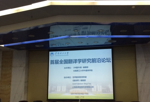 7月15日上午8:00-12:20,首届全国翻译学研究前沿论坛在华南理工大学人文逸夫馆召开。九名来自国内著名高校的翻译界专家针对各自研究成果进行了主旨发言,包括李德风教授、胡开宝教授、程乐教授、钟书能教授、马会娟教授、孙平华教授、许明武教授、周领顺教授及傅敬民教授,不仅使参会者了解到翻译学研究前沿动态,也给参会者一些研究思路和启示。
