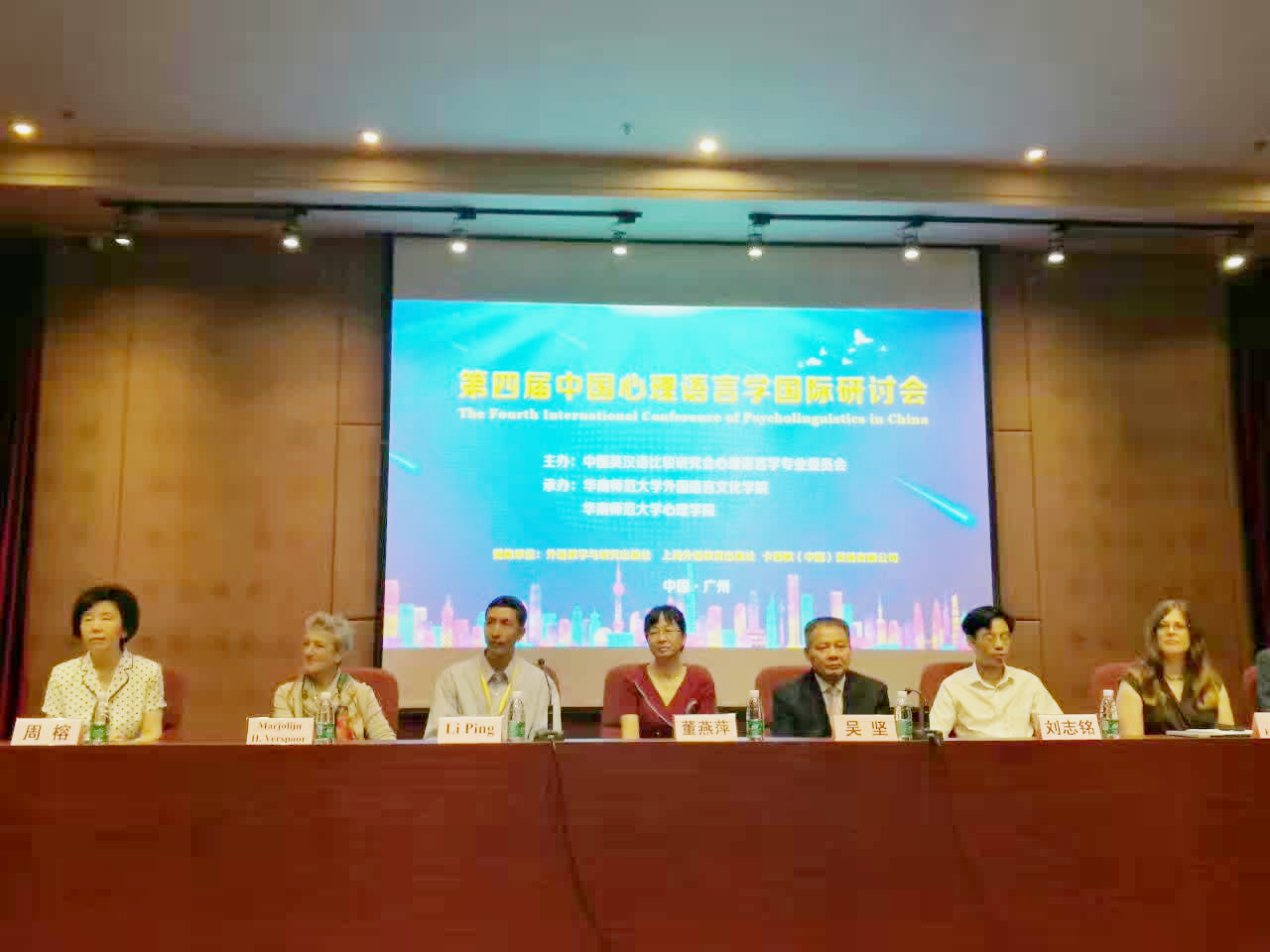 2017年5月19日至21日,英语系李红教授受邀携其指导的博士研究生张小红参加了第四届中国心理语言学国际研讨会。本次会议在广州市华南师范大学召开,由中国英汉语比较研究会心理语言学专业委员会主办,华南师范大学外国语言文化学院及心理学院承办。华南师范大学副校长吴坚教授、中国英汉语比较研究会心理语言学专业委员会主任董燕萍教授及华南师范大学外国语言文化学院院长周蓉教授出席开幕式并致辞。