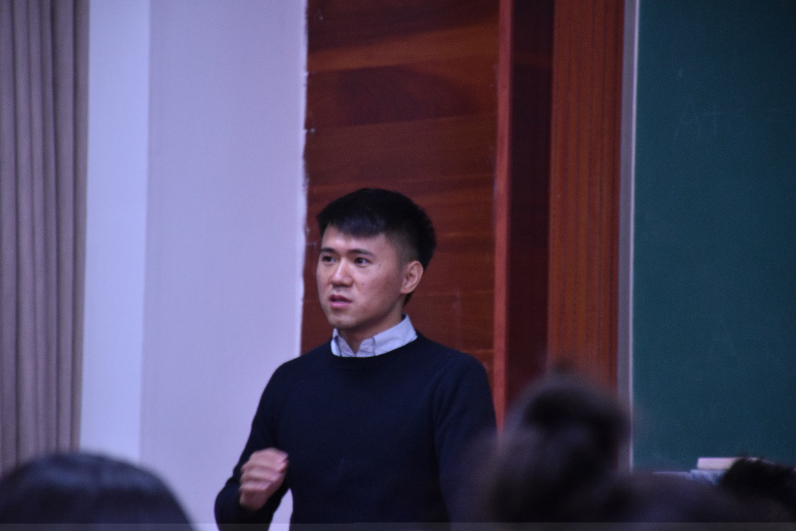 图一为邢欣宸学长在讲述7年的职场生涯 图二为宁梦星学姐讲述留学经历和德勤公司的工作经历