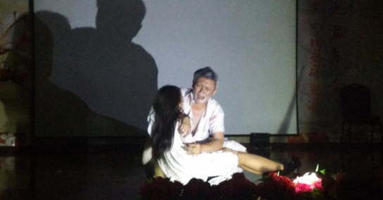 在英语及英美文化教学中做出的多样性的努力。作为本次比赛中惟一的一部悲剧,《李尔王》凭借着演员们在场上的爆发力、对人物性格和心理变化的准确把握,流利准确的英语台词,细腻的肢体语言和饱满的情感张力,以及灯光舞美的完美配合,感动了在场的所有观众。特别是剧末,李尔王抱着三女儿考狄利娅的尸体,展示出的茫然失措、痛不欲生的哀恸,让观众为之动容。在赛后的点评环节,河南大学李伟昉教授和东华大学莎士比亚研究专家杨林贵教授给予了《李尔王》的表演做出了很高的评价。