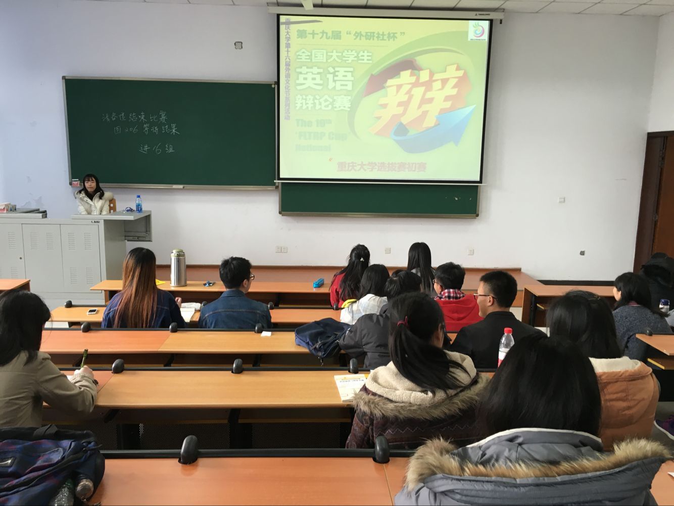 本场比赛为此次校园选拔赛的初赛,共有64支队伍共百余名选手参赛,四个会场同时进行。抽签完毕的选手在DYC207统一查看辩题。10分钟的准备时间过后,选手们各自进入会场进行比赛。此次校园选拔赛采取积分赛制。初赛共进行1轮比赛,每场4队共8人进行辩论,分数按照每队两名选手得分相加,随机分组,然后确定晋级人数。