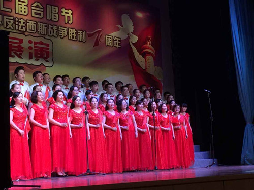 第七届合唱节“庆祝中国人民抗日战争胜利暨世界反法西斯战争胜利70周年”合唱展演活动,并最终在比赛中荣获全校三等奖。