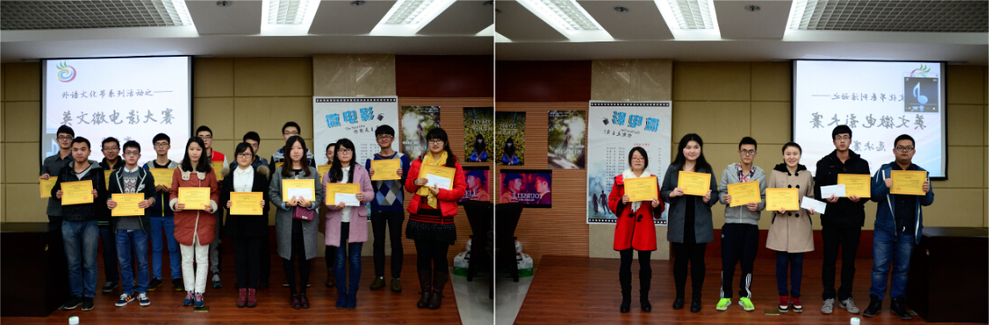 第14届外语文化节的重要组成部分,首届大学英语“主题微电影”大赛总决赛于2014年12月6日在虎溪校区综合楼DZ125胜利闭幕。