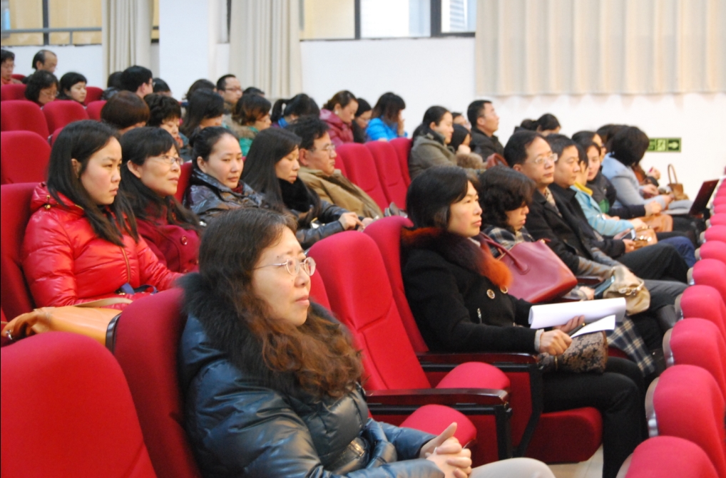然后,李红院长为大家做了题为《深化改革构建特色提升质量开拓创新》的报告。李院长首先介绍了我国高等教育改革面临的形势和任务,强调高校要创新人才培养机制,注重教育公平,提升学生人文素养,并传承传统文化;接着介绍了外语学院师资、学科、专业建设、实验示范中心建设、国际合作等工作现状,并指出外语学院面临的发展机遇与存在的问题,比如学科定位、教师队伍提升、国际化办学、参与文化强国的建设等;最后给大家布置了十个讨论题目,包括学科属性与内涵、如何开展课堂教学研究、研究生培养与科研水平提升等,希望各二级单位教职工会下就这些题目深入讨论,为学院发展贡献自己的智慧。