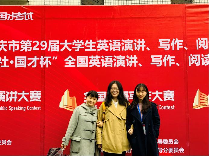 张菁淳同学、杜英杰同学、程芳同学在重庆市第29届大学生英语演讲、写作、阅读比赛暨2019“ 外研社·国才杯”全国英语阅读、写作、演讲大赛重庆赛区决赛中获得特等奖。此外,我校其他参赛学生还取得各项比赛一等奖3项、二等奖5项以及三等奖3项。本次大赛在重庆科技学院举行,重庆市共26所高校269选手参赛,包括英语专业本科、大学英语本科、英语专业研究生、非英语专业研究生等六个组别同台竞技。