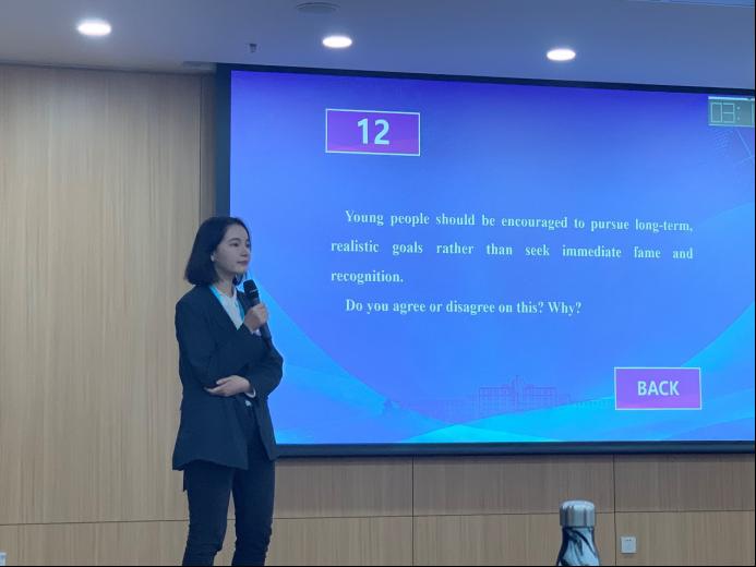 下午的决赛中,非英语专业组及英语专业组同学在同一赛场一决高下。选手们需要先进行3分钟即兴演讲,并回答两位外教各提的一问。针对严格的超时少时扣分1分的时间规则,以及外教灵活多变的提问,我校三位选手在演讲台上均能从容应对、机制化解,为最终取得优异成绩奠定了基础。