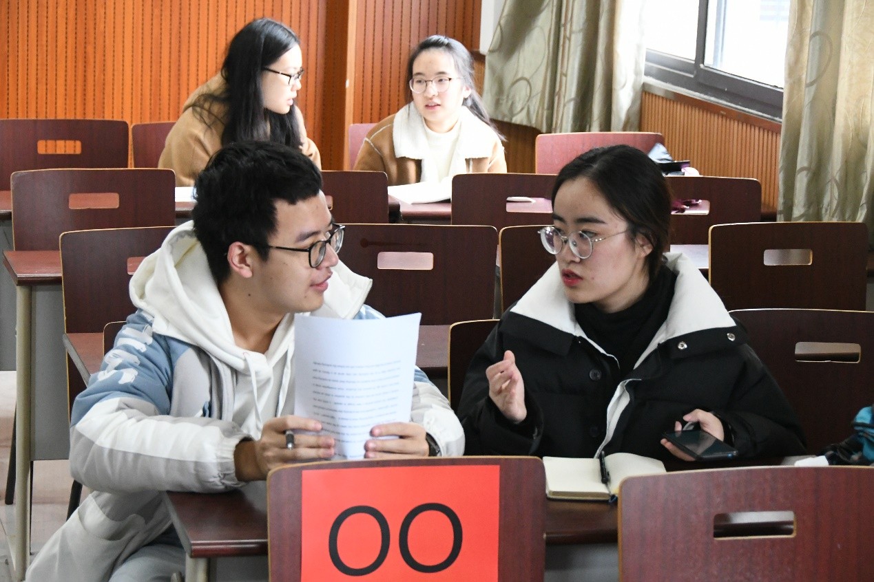 经过上午的激烈角逐,最终依据个人得分脱颖而出进入复决赛的16位选手,需两两自由组队,形成8支队伍,分两个赛场同时进行复赛,每位辩手的发言时间为7分钟,最后再按照团队分高低决出两个赛场的前2支队伍进入最终校选赛的决赛。