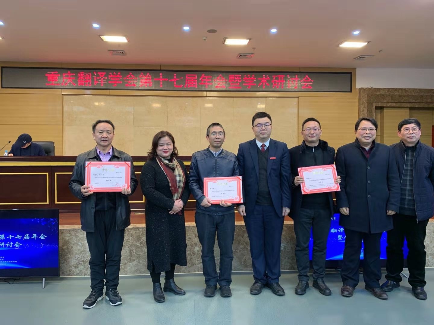 我院彭静院长、范定洪副院长、李永毅教授及翻译方向部分研究生参加了此次会议。李永毅做了题为 “中外团队在中国文学对外译介中的优势” 主旨发言,引起与会代表的热烈反响。本次会议还评选了重庆翻译学会第五次优秀科研成果,李永毅的译著《哀歌集 黑海书简 伊比斯》获得特等奖,陈晓莉的译著《音乐疗法》获得三等奖,余泽梅的译著《舞动疗法》获得优秀奖。在换届选举中,李永毅当选为重庆市翻译学会副会长,陈晓莉、范定洪、余泽梅、陈梅当选为理事。