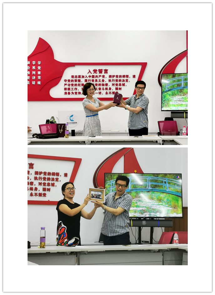 第二场故事是“身边党员先锋故事会”,支部老党员朱万忠教授讲述了自己入党至今的党员故事。朱万忠教授虽已到退休年龄,但仍坚持奋斗在人才培养的第一线。朱万忠教授在讲解的最后以“老老实实做人,踏踏实实做事”寄语在座党员,希望大家进一步发挥党员先锋作用,进一步提高大学英语教学质量。欧玲书记代表学院党委对朱万忠教授多年来为学院党建、教学科研和学院发展做出的重要贡献表示感谢。