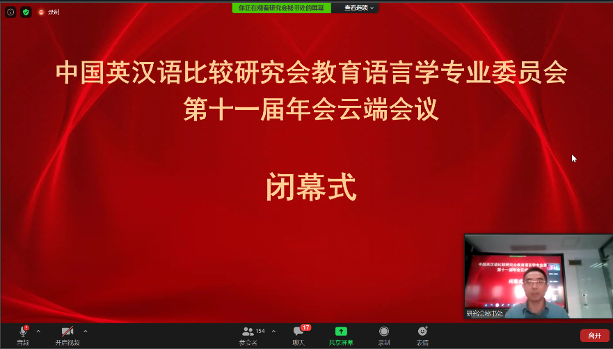 最后,中国英汉语比较研究会教育语言学专业委员会会长俞理明教授致闭幕辞,代表中国英汉语比较研究会教育语言学专业委员会对年会取得圆满成功表示祝贺,对漫蛙