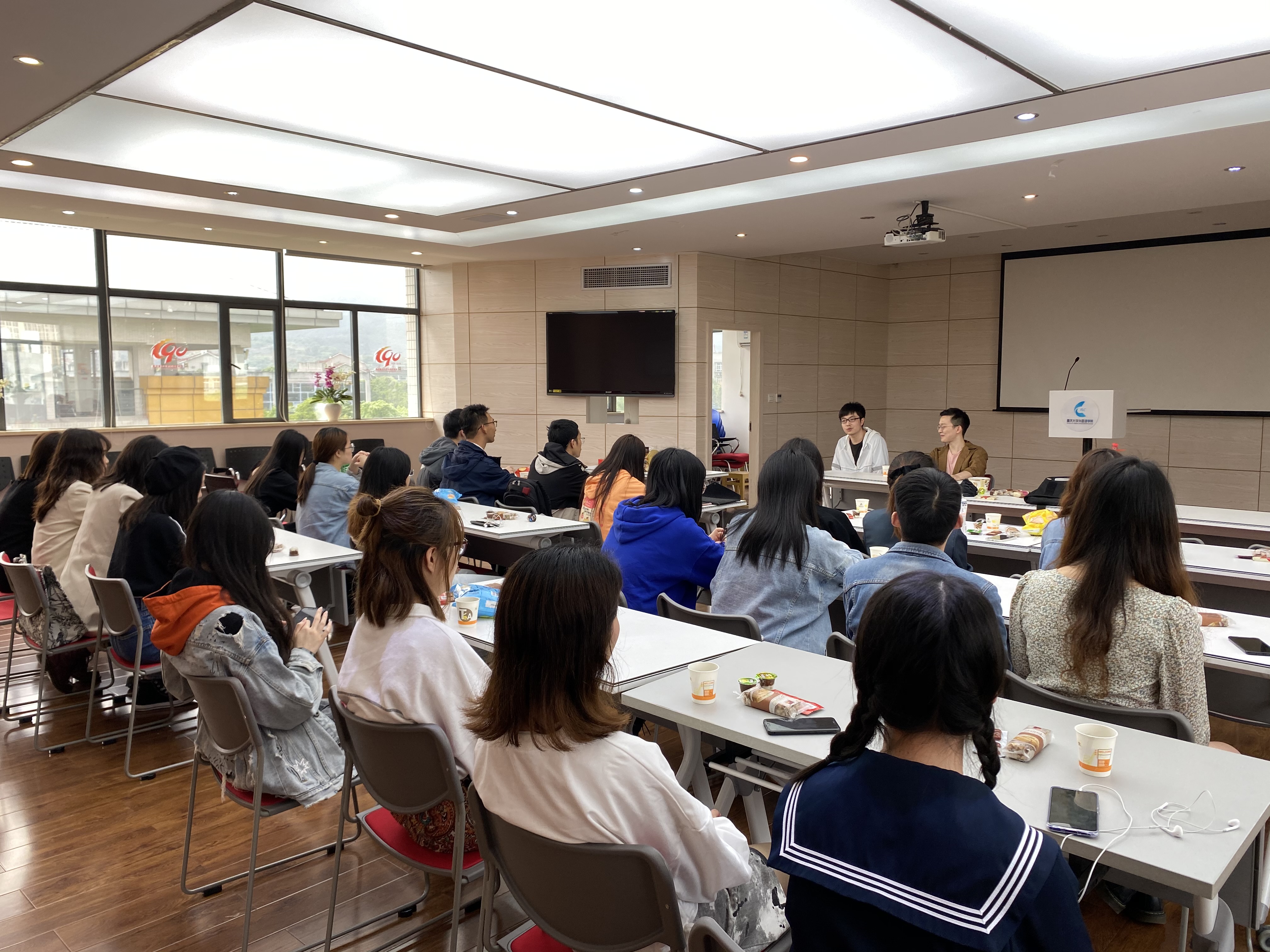 2020级翻译硕士在读的黄晓波和苏东标两位同学和大家进行了交流与分享。班导师邓琪老师及英语系2018级3、4班全体同学参加了本次主题班会。