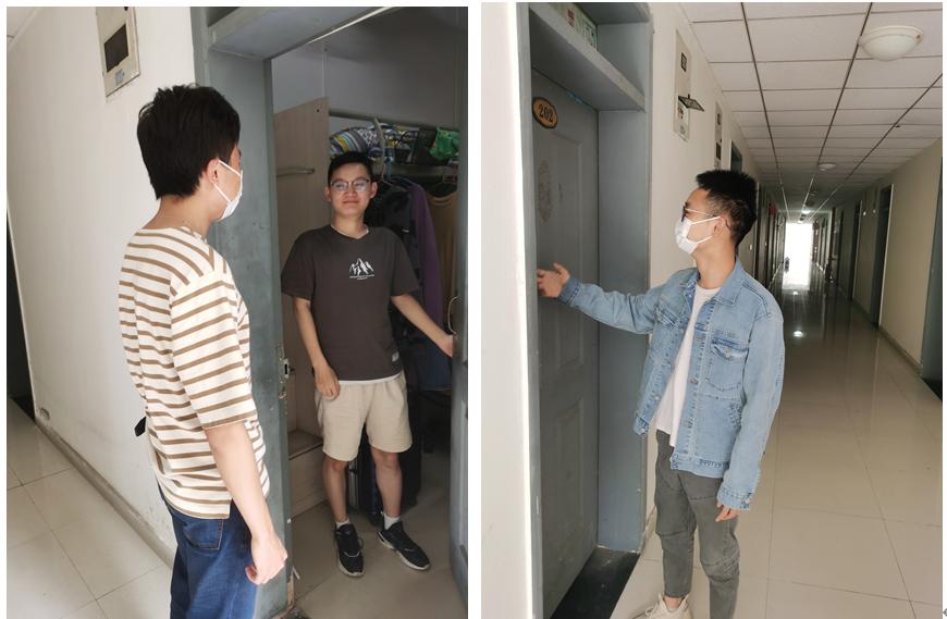 在担任学生工作职务的党员中,支部宣传委员刘洵同志负责提醒与敦促兰园五幢的男生,支部组织委员杨姝同志负责菊园宿舍区的提醒与组织工作。接到任务后,两名支委迅速行动起来,与支部其他党员一同到各个宿舍敲门,提醒同学下楼集合。最终,学院同学快速、有序地完成了集结,在学校志愿者与工作人员的带领下前往操场进行核酸检测。