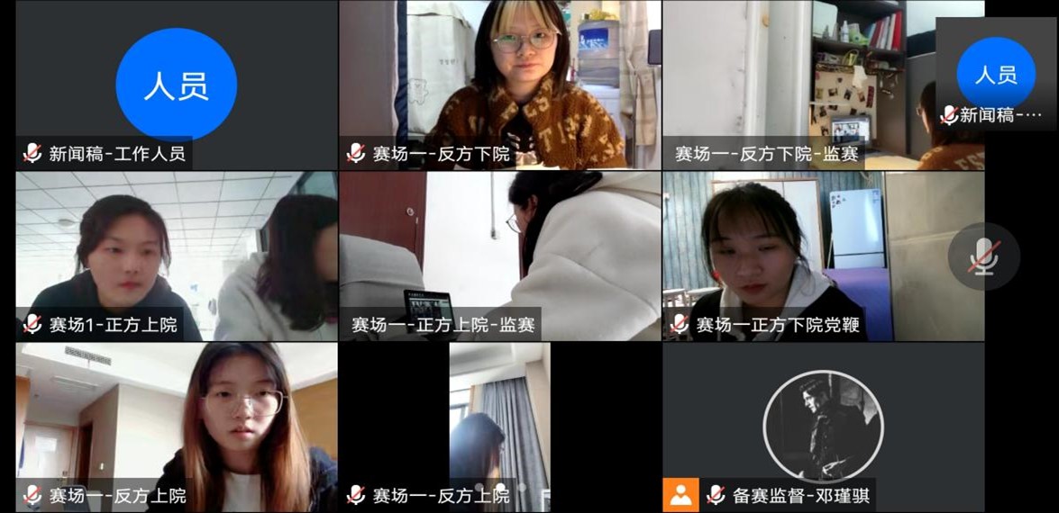 校园选拔赛在腾讯会议线上平台顺利举办。本次大赛共吸引全校25个学院66个专业的64支队伍参赛,赛事分为初赛、复赛、决赛三场赛程,采用英国议会制(BP赛制),每轮4支辩论队出场,正反方分别由2支队伍构成,并分别发表开篇陈词和总结陈词。