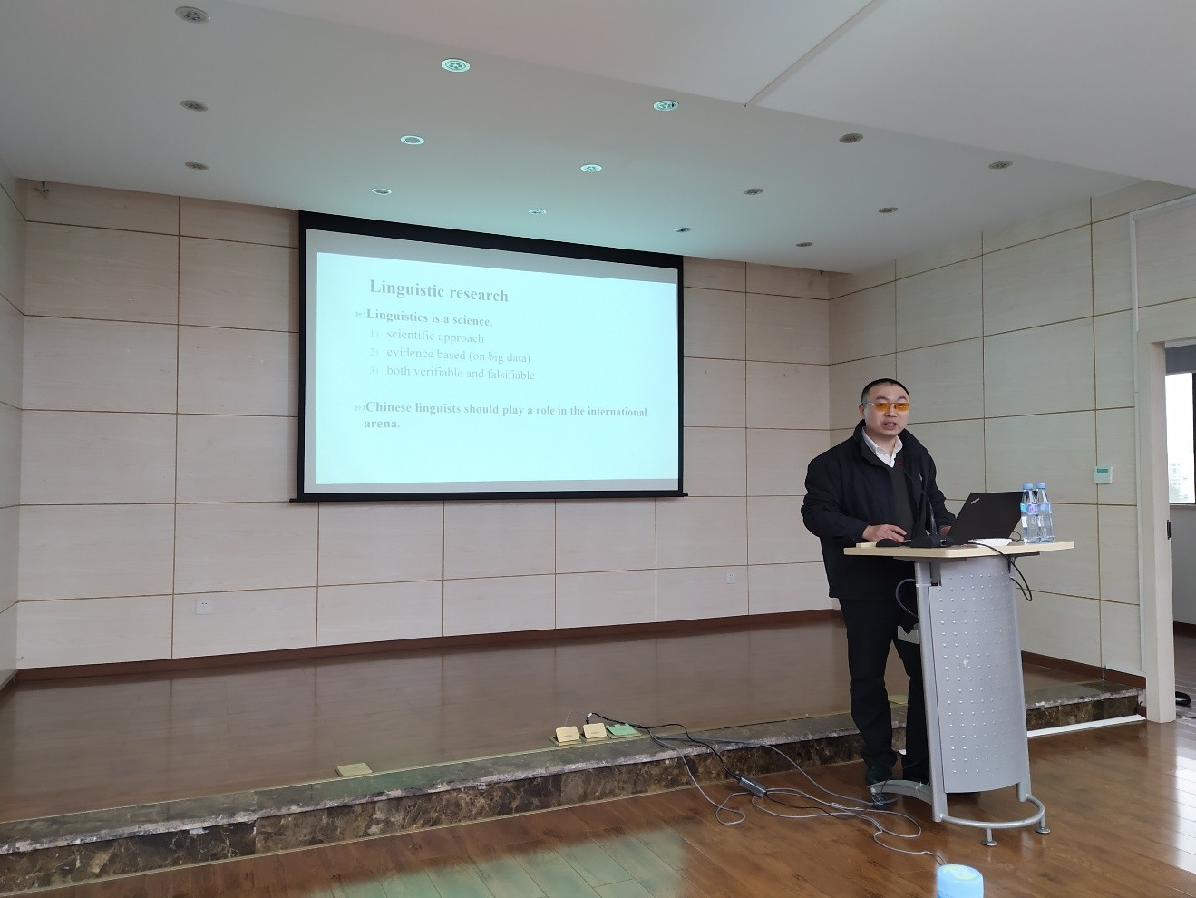五楼报告厅作了题为“Corpus-based research in applied linguistics: Examining collocations in academic English”的讲座。本次讲座由肖巍博士主持,学院党委书记欧玲、副院长杨小虎及部分教师和研究生参加了此次讲座。