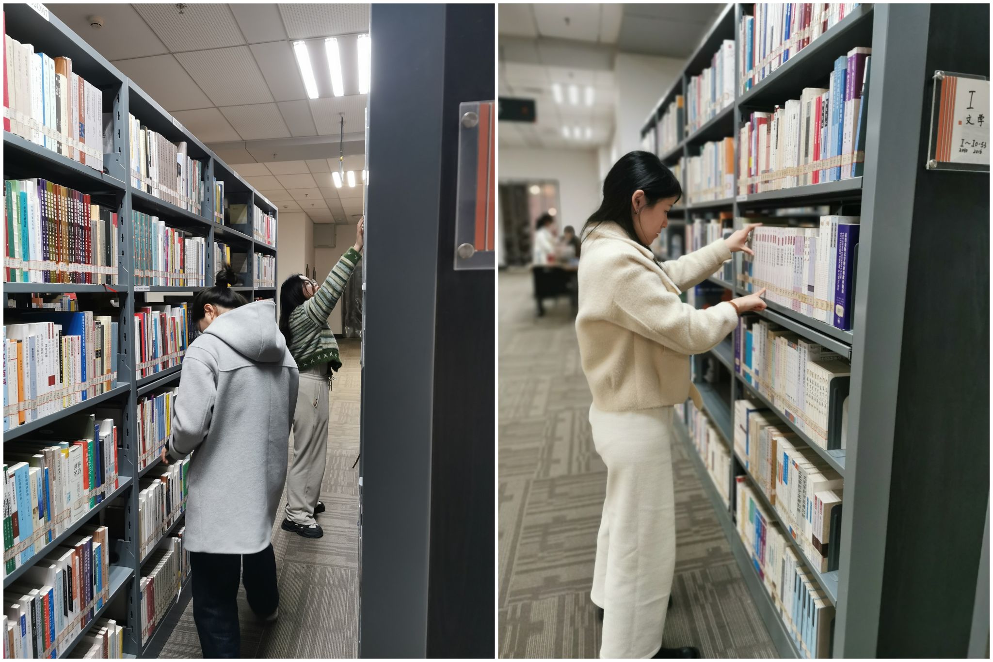 虎溪校区图书馆,开展了图书整理志愿服务活动。