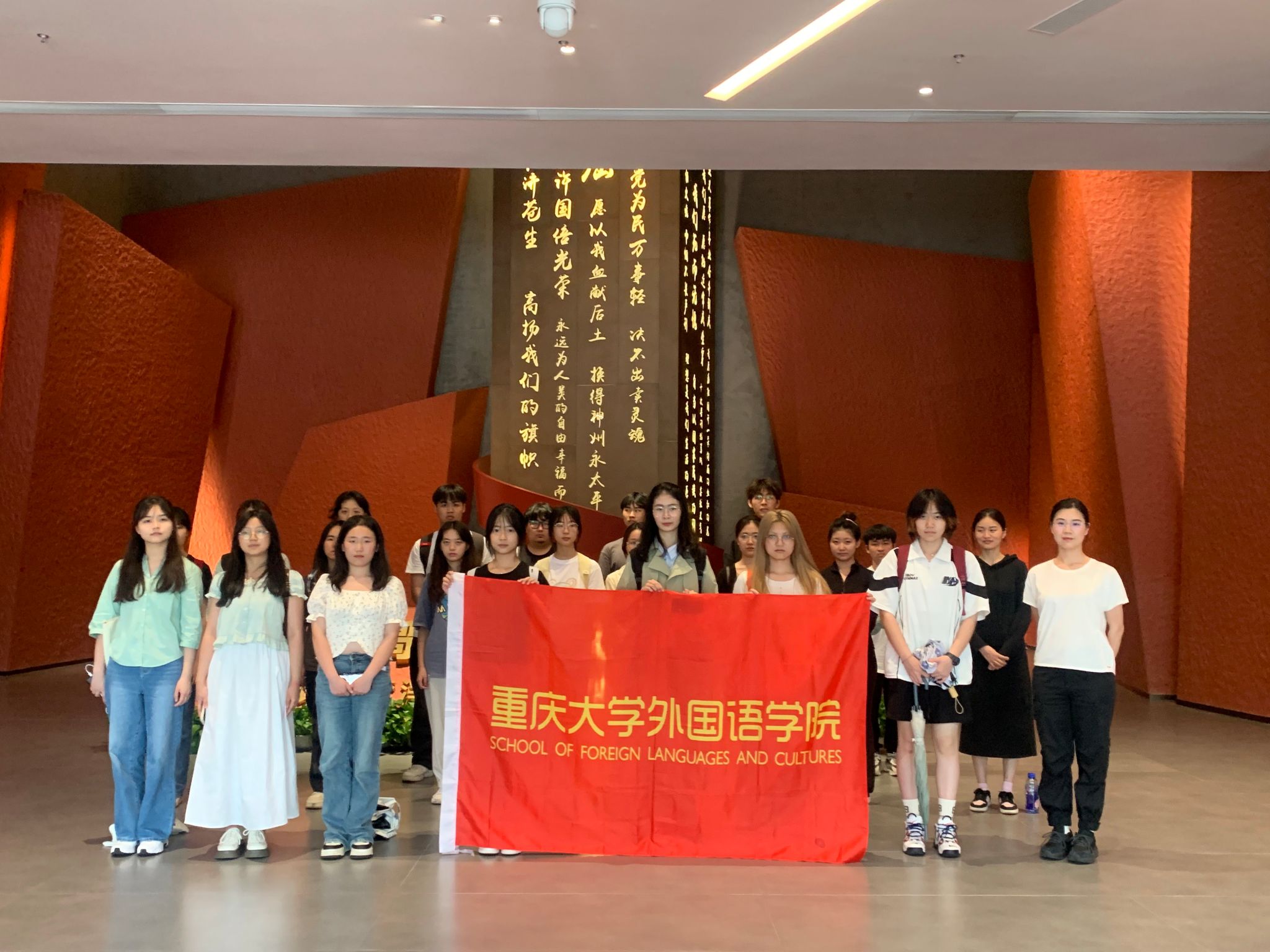 参观结束后,学员们在红岩博物馆门口合影留念并就此次参观进行交流,大家纷纷表示“作为大学生,我们深感肩上的责任重大。革命先烈们用生命为我们换来了今天的幸福生活,我们没有理由不珍惜。同时,我们更应该继承和发扬先烈们的革命精神,为实现中华民族的伟大复兴而努力奋斗。”