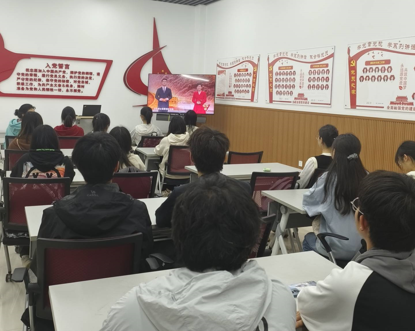 党委组织第48期入党积极分子培训的学员集体观看《榜样8》专题节目,学习时代榜样,争做奋斗青年。