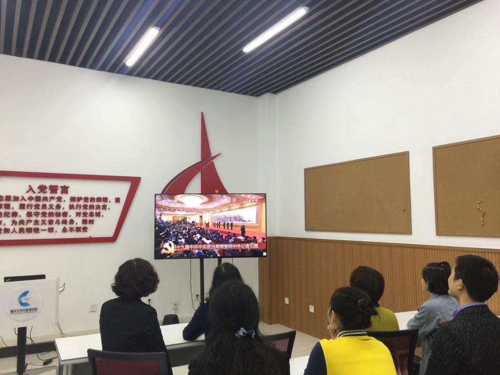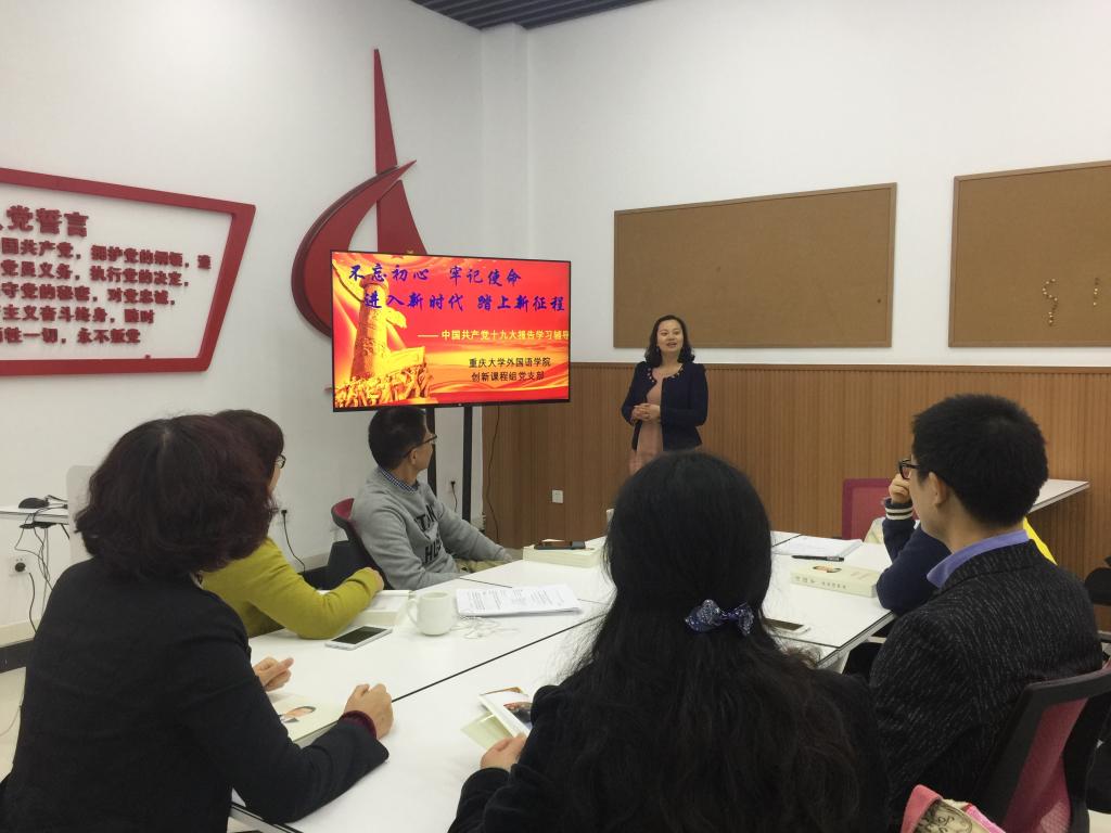 105党建室,创新课程组党支部举行了“深入学习十九大报告精神”的主题党日活动。支部全体党员首先收看了“十九届中共中央政治局常委同中外记者见面”现场直播。随后,同志们又深入学习了“十九大报告精神”。十九大报告分为十三个部分: 一、过去五年的工作和历史性变革;二、新时代中国共产党的历史使命;三、新时代中国特色社会主义思想和基本方略;四、决胜全面建成小康社会,开启全面建设社会主义现代化国家新征程;五、贯彻新发展理念,建设现代化经济体系;六、健全人民当家作主制度体系,发展社会主义民主政治;七、坚定文化自信,推动社会主义文化繁荣兴盛;八、提高保障和改善民生水平,加强和创新社会治理;九、加快生态文明体制改革,建设美丽中国;十、坚持走中国特色强军之路,全面推进国防和军队现代化;十一、坚持“一国两制”,推进祖国统一;十二、坚持和平发展道路,推动构建人类命运共同体;十三、坚定不移全面从严治党,不断提高党的执政能力和领导水平。报告的主题是:不忘初心,牢记使命,高举中国特色社会主义旗帜,决胜全面建成小康社会,夺取新时代中国特色社会主义伟大胜利,为实现中华民族伟大胜利,为实现中华民族伟大复兴的中国梦不懈奋斗。习近平总书记强调:不忘初心,方得始终。中国共产党人的初心和使命,就是为中国人民谋幸福,为中华民族谋复兴。这个初心和使命是激励中国共产党人不断前进的根本动力。全党同志一定要永远与人民同呼吸、共命运、心连心,永远把人民对美好生活的向往作为奋斗目标,以永不懈怠的精神状态和一往无前的奋斗姿态,继续朝着实现中华民族伟大复兴的宏伟目标奋勇前进。同志们就报告的各部分内容进行了热烈的讨论并发表了自己的看法。其中余渭深教授指出:二十一世纪是中国迅速崛起的世纪。我国的发展有一种大国气质,能融合各民族的多元文化,复兴我们的传统文化,提升文化自信。二十一世纪就是中国的时代等。