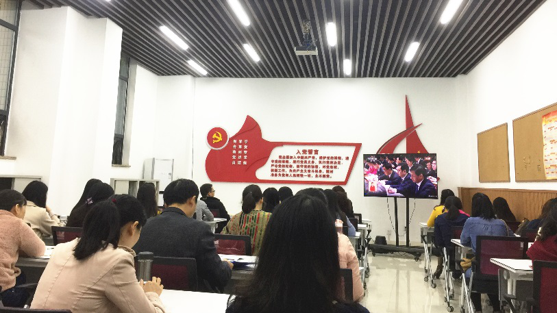 上午9点,行政支部党员们早早来到外语学院楼105党员活动室收看十九大开幕会现场直播。聆听、学习总书记的报告,不少在场党员都表示心潮澎湃,特别激动,“感觉党就在身边,总书记就在身边。”大会“不忘初心、牢记使命”的主题对大家也是一种鞭策和激励。报告全面总结了过去几年所取得的成果,准确分析了当今国内国际形势,并对中国未来发展提出了新的美好愿景。大家均表示本次报告内涵丰富、思想深刻、高屋建瓴、催人奋进,令人倍感自豪。