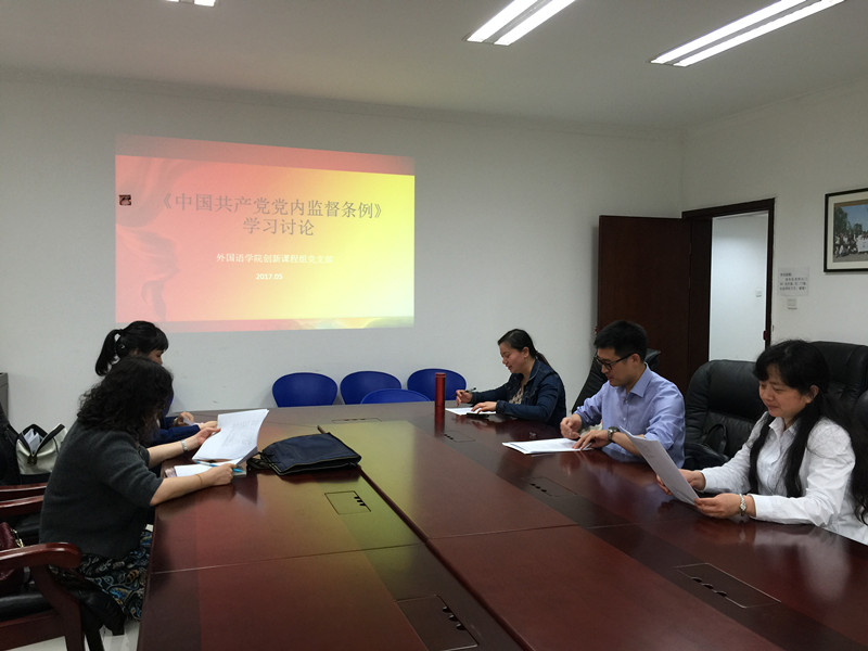 2017年5月10日, 外语学院创课程组全体党员在学院418会议室开展党组织生活,集中学习《中国共产党党内监督条例》。