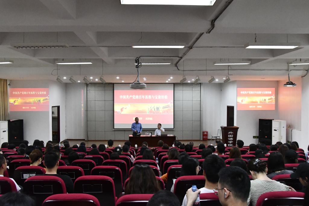 承办。活动邀请马克思主义学院刘洪彪教授做了题为《中国共产党的百年历程与宝贵经验》的精彩讲座。宣讲会由人文学部综合办公室主任曹跃群教授主持,来自漫蛙