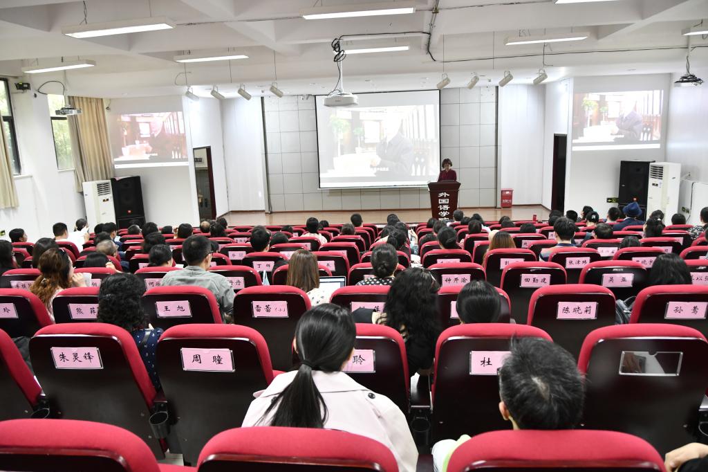 发展史,以韩其顺、罗信群、姜治文教授等老党员、重大外语人奋斗拼搏的故事勉励大家爱岗敬业、甘于奉献,认真落实立德树人根本任务,做“四有”好老师,做人民满意的好老师。她强调要不忘信仰之心,对教育事业负责任;不忘敬畏之心,对教师称谓敢担当;不忘仁爱之心,对学生关怀送温暖,为办好人民满意的教育、培育担当民族复兴大任的时代新人砥砺前行、不懈奋斗。