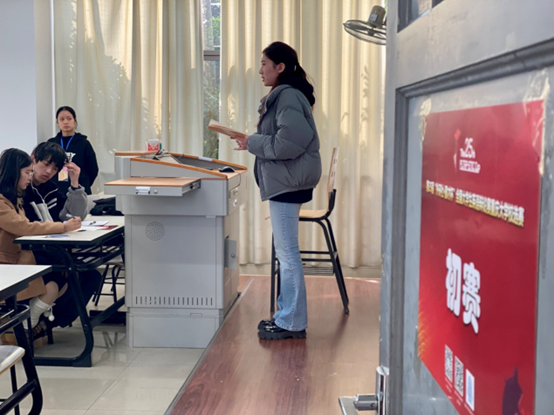 初赛分四个赛场进行三轮比赛,每一轮的辩手们就辩题展开了激烈的辩论,唇枪舌剑、各抒己见。5分钟的发言时间对于台上侃侃而谈的同学显得转瞬即逝,每位选手都在努力夯实己方观点同时确保语言精准有力。经评委严谨合议、打分,最终每个赛场个人得分排名前四共计16位选手进入复赛。