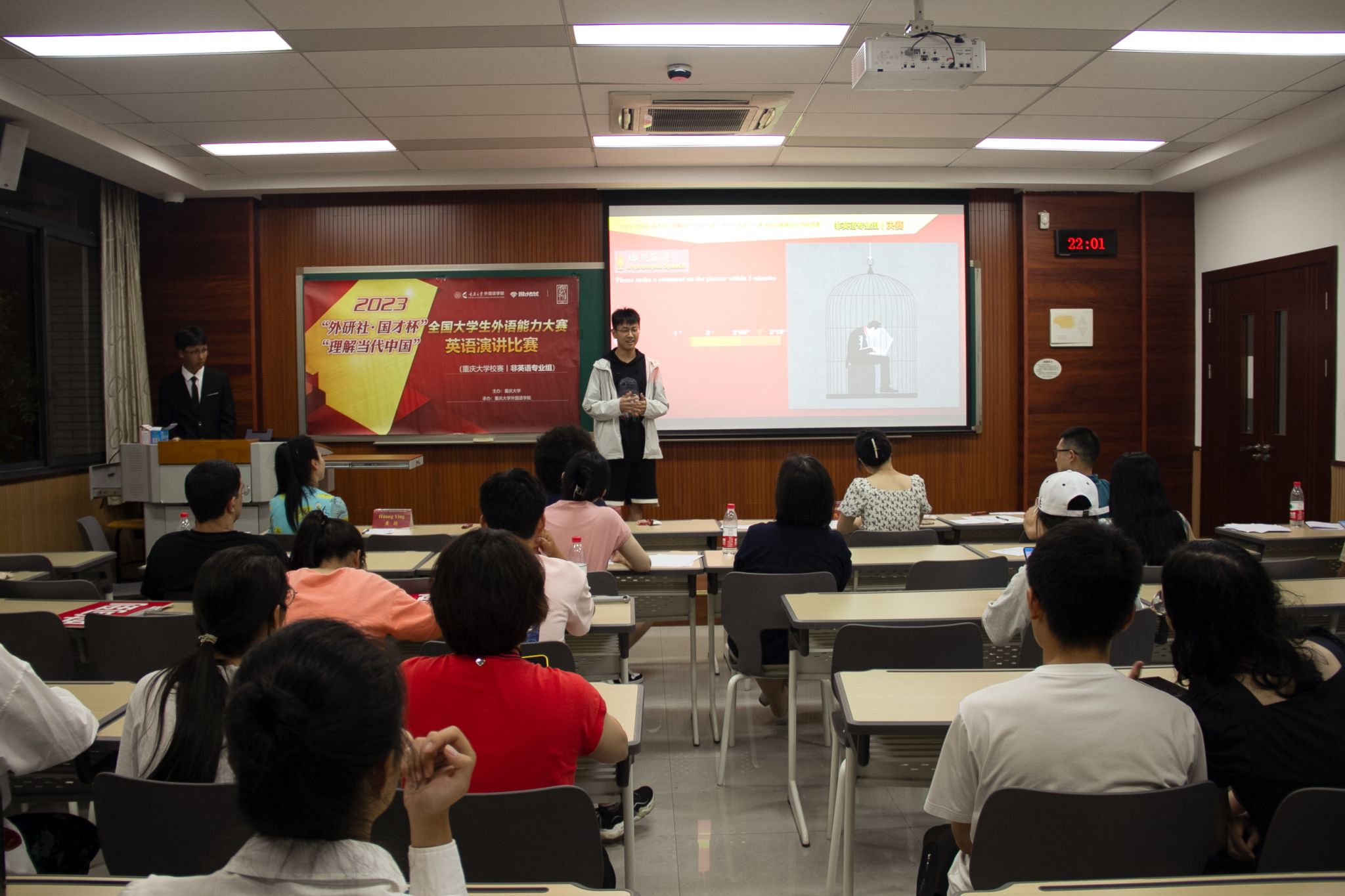 英语演讲比赛分英语专业组、非英语专业组两个组别于7月、9月先后进行。非英语专业组英语演讲比赛于7月6日在虎溪校区第一教学楼进行,漫蛙