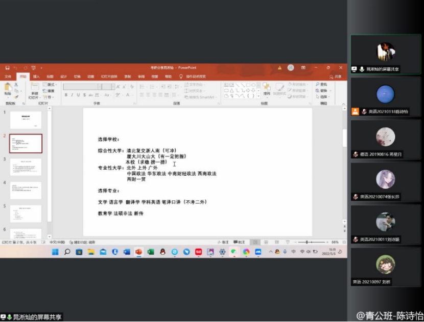 屏幕隔开你我的距离,但学姐学长带来的干货依旧满满。借用谢书凝学姐写在最后的祝福:“我喜欢的是追寻他的过程”“我相信,于是我坚持。”向阳的路并不平坦,且以笔为剑,斩荆棘、过乱石。胜利者的桂冠不是那张文凭,而是一路的汗水和坚持。
