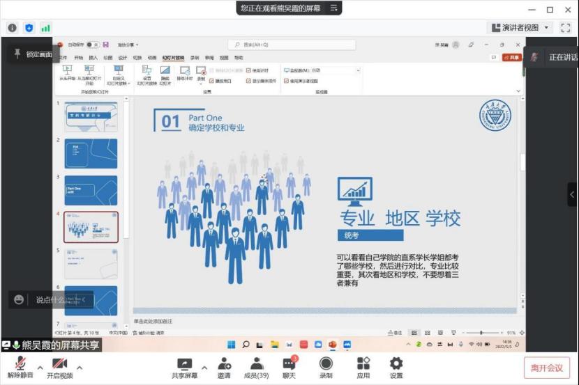 团委在腾讯会议举行线上考研交流分享会。本次分享会旨在为正在备考的学生提供可借鉴的经验和帮助,提高备考同学的积极性和效率,也为有意考研的同学提供相关信息。本次会议邀请到了8位2018级成功上岸的学姐学长。会议由学生会学业促进部主持。