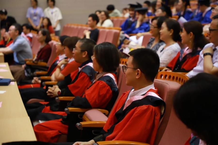 此后,隆重的授位仪式正式开始。学位委员会的各位教授上台为全体毕业生颁发学位证书,并为他们拨穗正冠。
