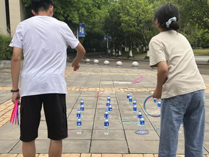 活动规则要求参与的同学四人一组组成闯关小队,打卡虎溪校园中任务点,完成集趣味性、协作性于一体的“跳长绳”“你画我猜”“趣味保龄球”“趣味套圈圈”“遣词造句”等任务。