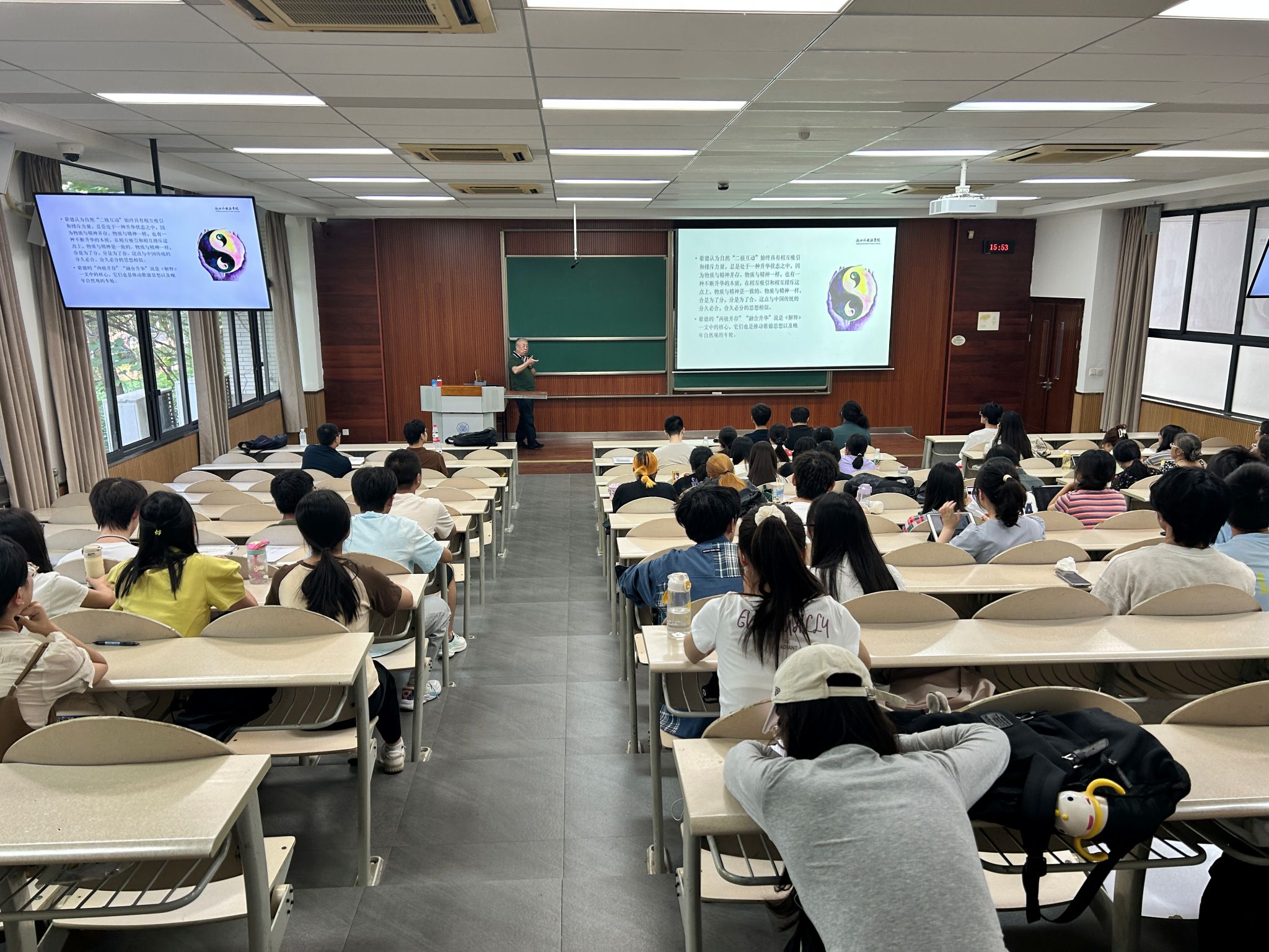 2023年9月15日下午,原浙江大学秘书长,二级教授、博导范捷平教授为我院师生贡献了题为《歌德的自然观:两极并存与融合升华》的学术讲座。
