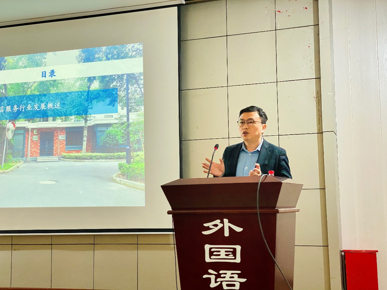 讲座上,毛隽博士从语言行业类型、语言服务岗位需求现状、人工智能下的语言行业等大方向讲解,主要强调了复合型人才的重要性,给予了同学们职业规划和发展的启示。