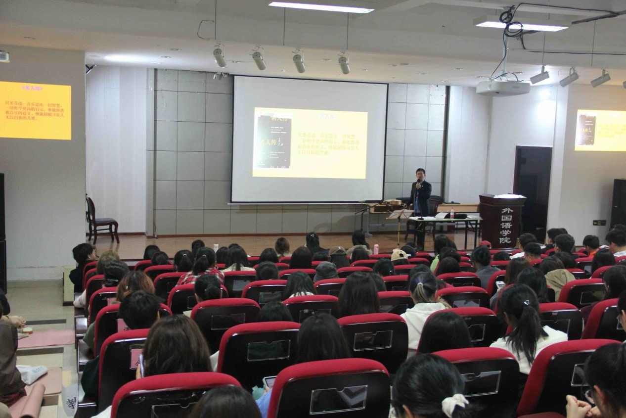 2023年10月22日晚,四川外国语大学段俊晖教授来校做了“英语歌曲赏析与跨文化交际学习”的主题讲座。讲座由漫蛙
