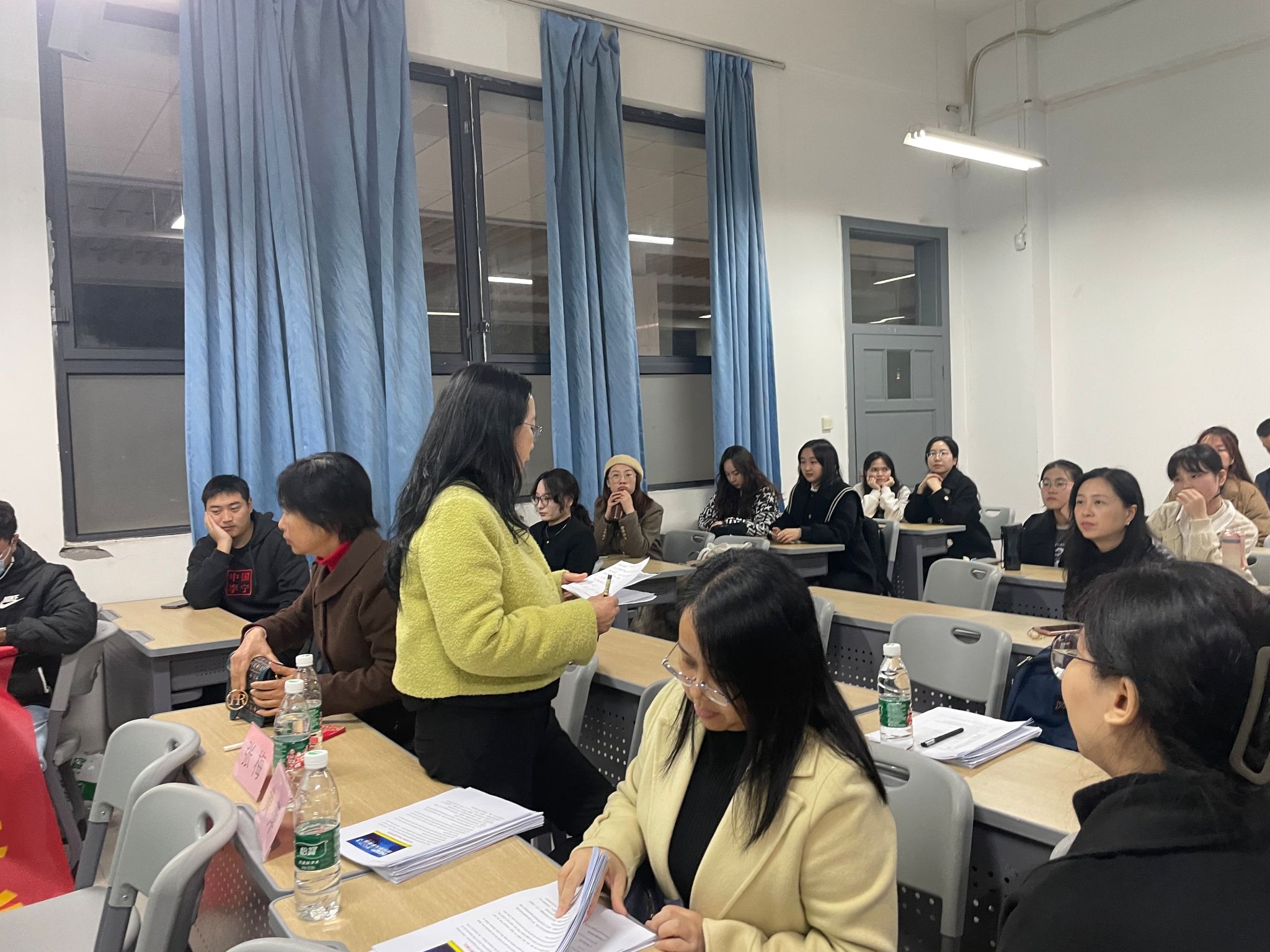 (黄萍老师点评选手表现,观众认真听讲)